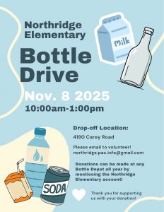 Northridge Bottle Drive November 8th 10:00 am – 1:00 pm